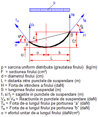 Fire suspendate in doua puncte denivelate cu valoarea "h"